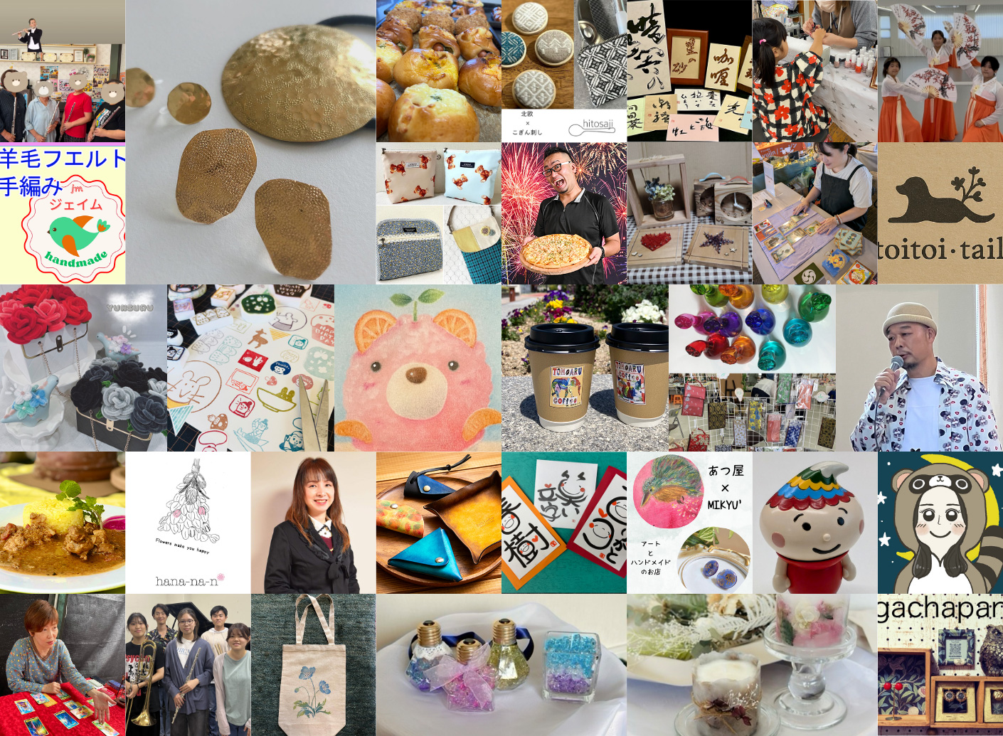 ハンドメイドアクセサリー・書・ドライフラワー・ペット小物・布小物・占いなど