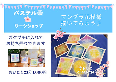 画材のパステルでマンダラ花模様を描く色あそび体験♪
