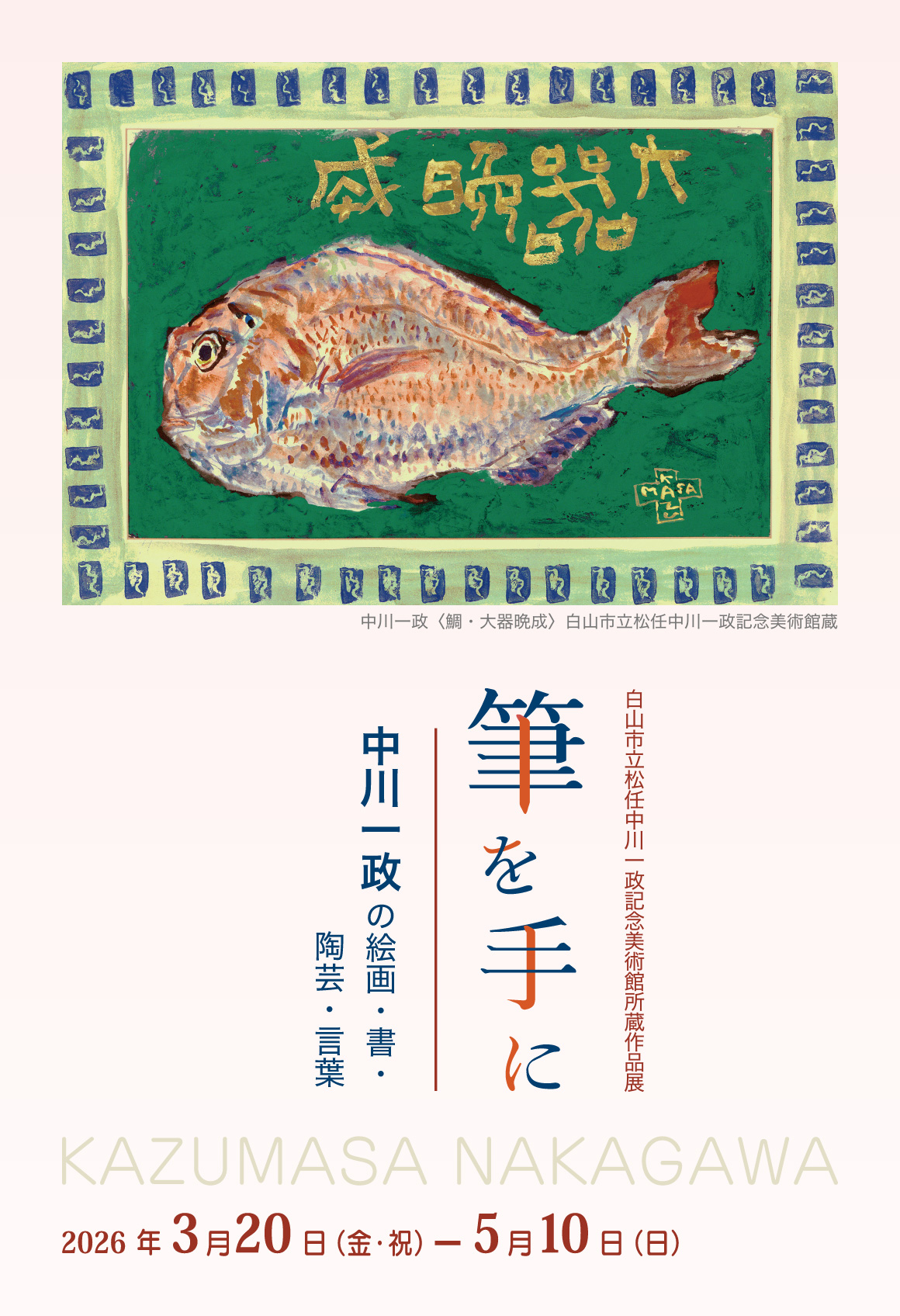 白山市立松任中川一政記念美術館所蔵作品を中心に、筆を手に、多岐にわたる分野で芸術作品を生み出した中川一政の創作活動を紹介します。