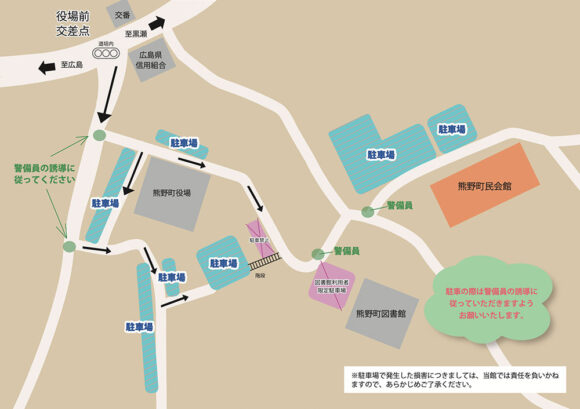 4月19日(日)夏井いつき先生トークショー当日は、地図のように駐車場をご利用ください。